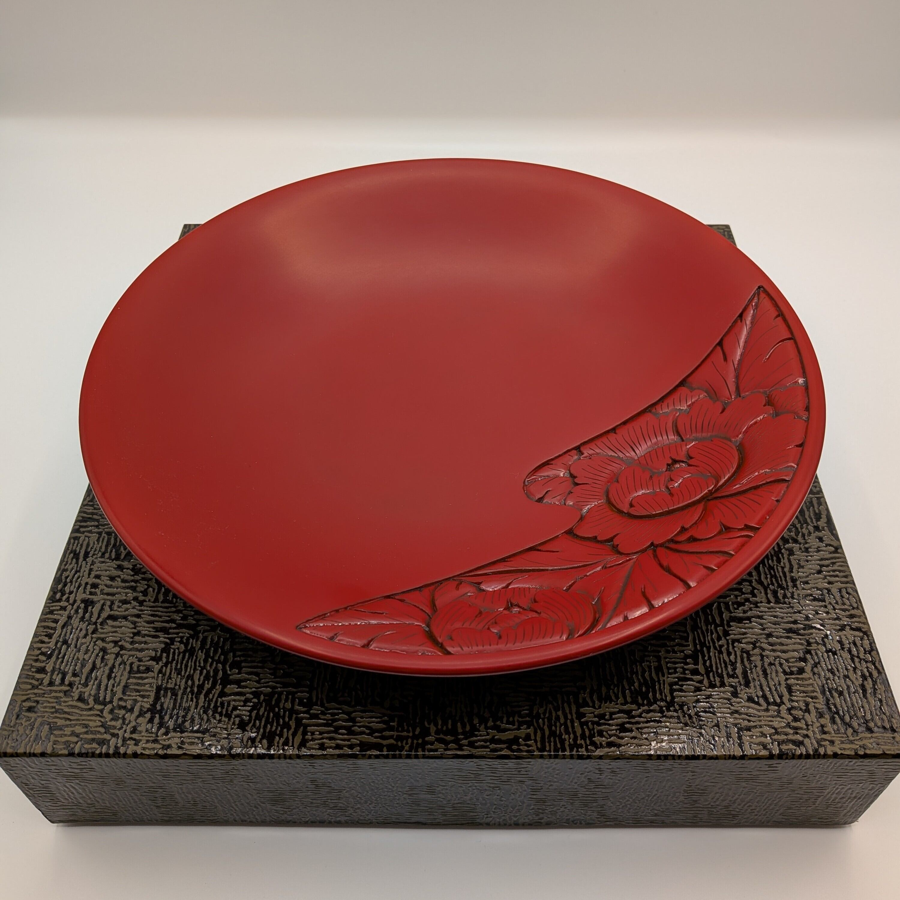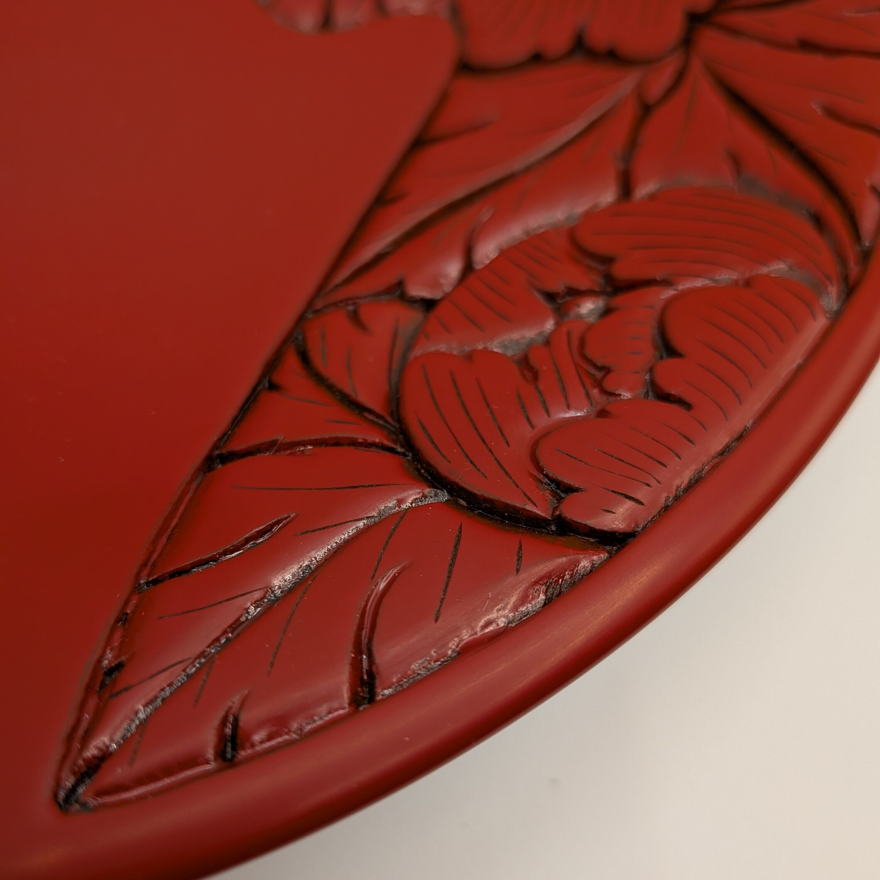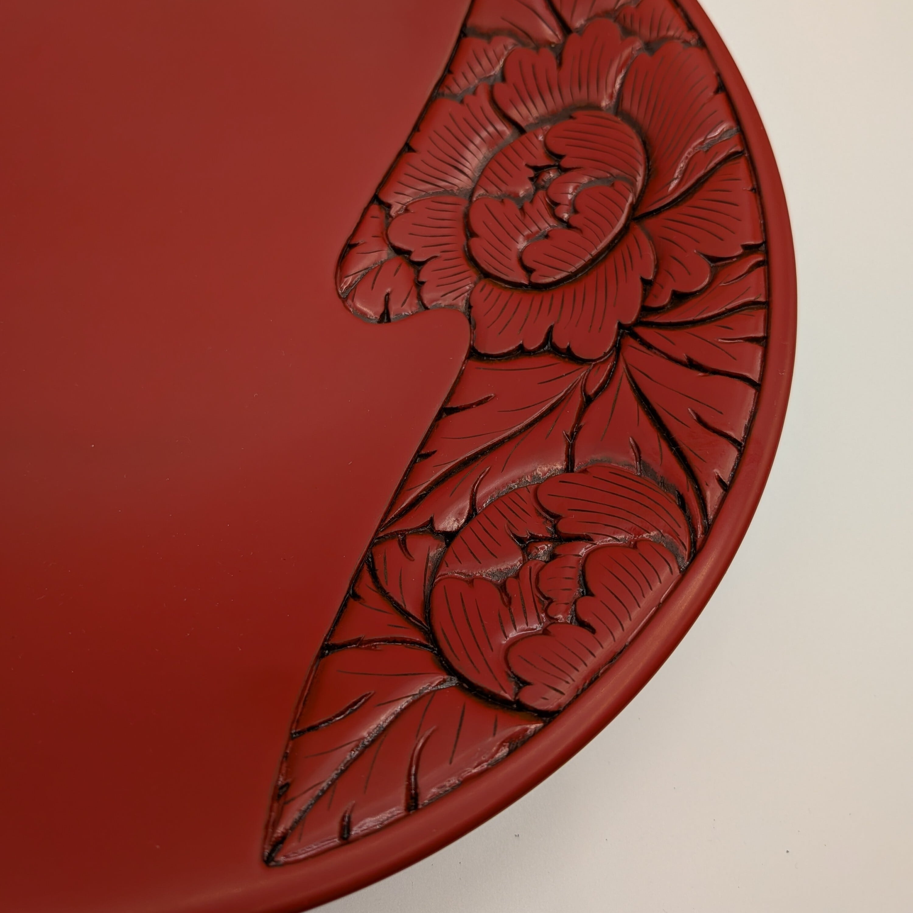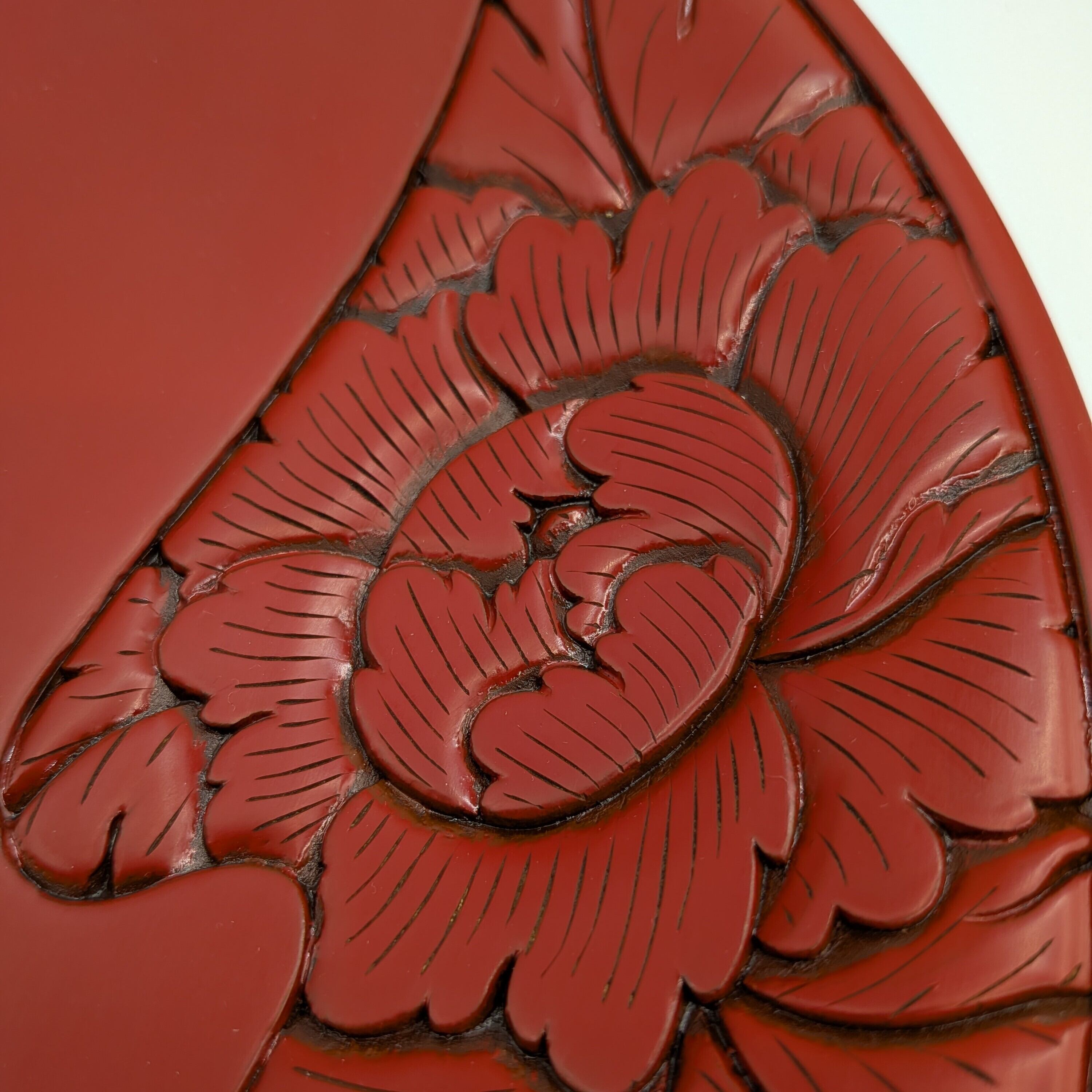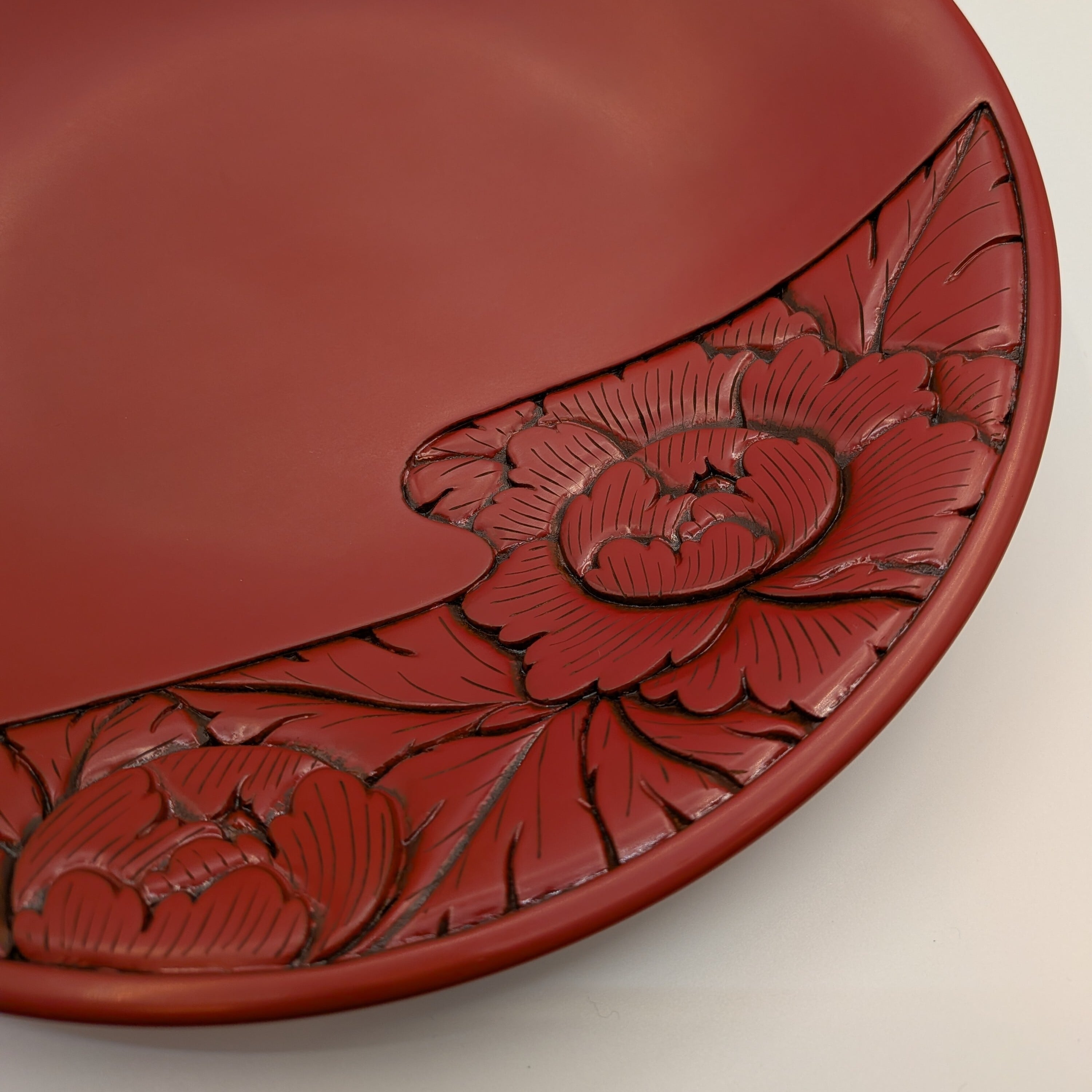 朱のやわらかな艶に、波唐草の彫りが映える。