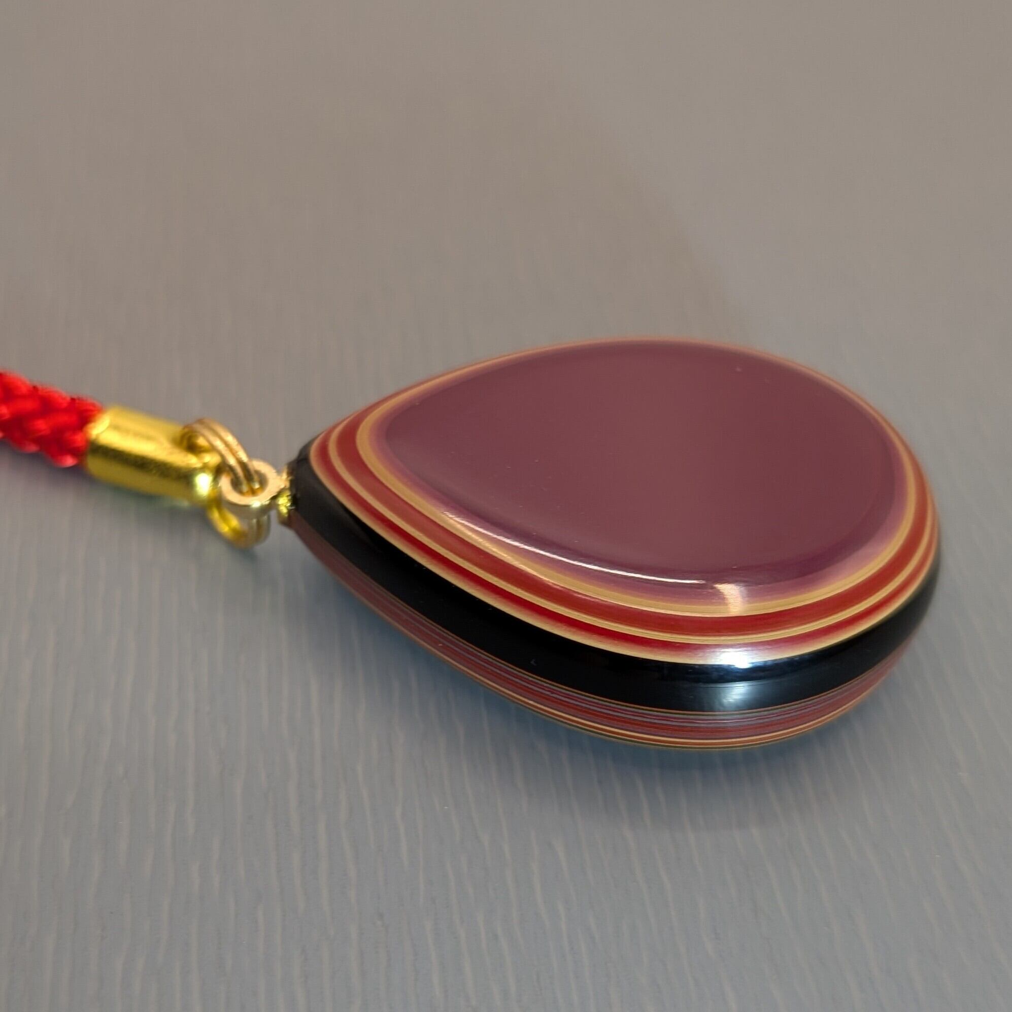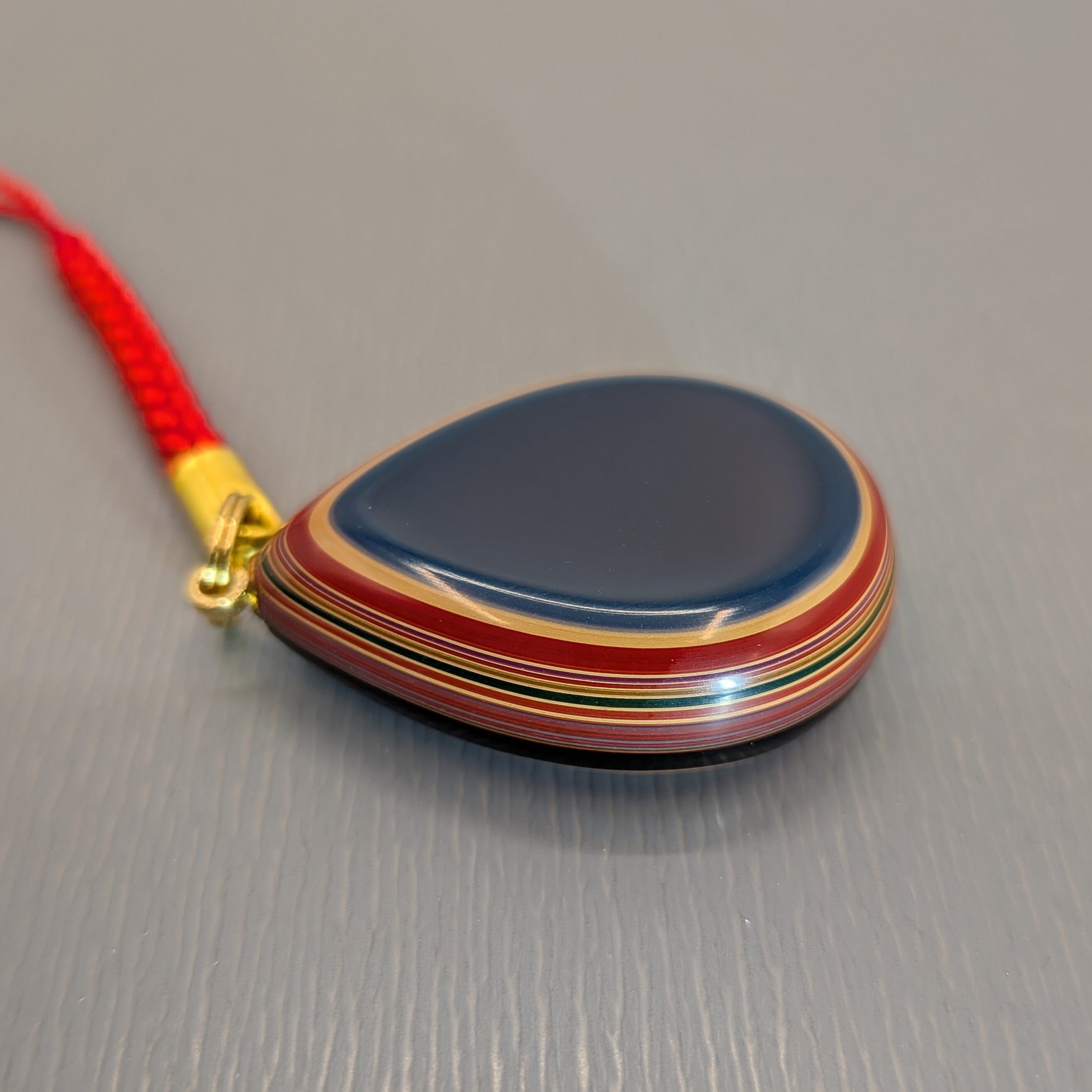 伝統工芸士・小田和生氏による、本堆朱の根付(ストラップ)しずく型です。